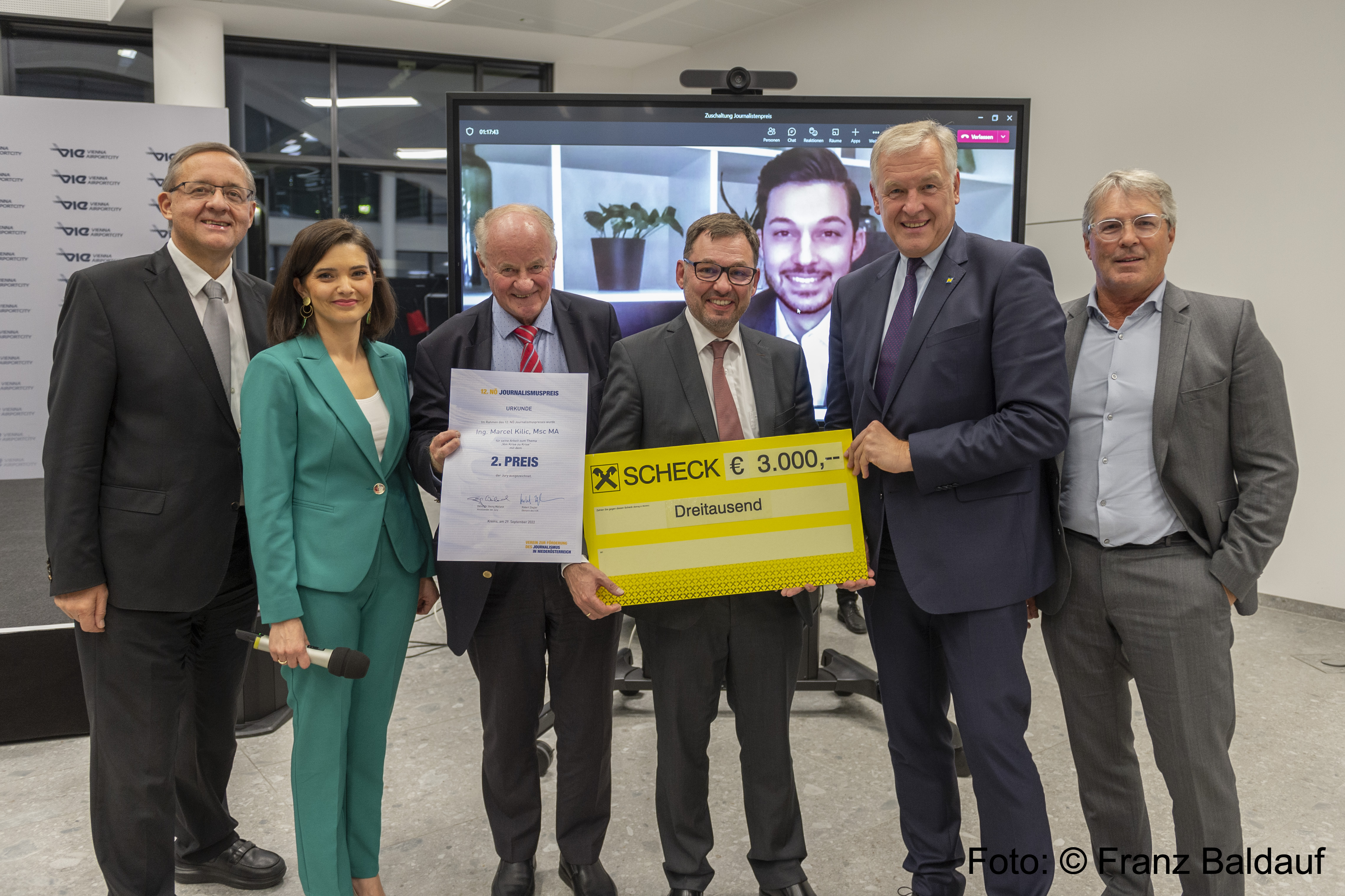 Verliehen wurde der 12. NÖ Journalismuspreis im Office Park am Flughafen Wien-Schwechat im Beisein von Hausherr Flughafen-Vorstand Günther Ofner und dem niederösterreichischen Landesrat Martin Eichtinger. „Presse“-Chefredakteur und -Herausgeber Rainer Nowak hielt bei der Verleihung eine Keynote über nationale und internationale Krisen, die er während seiner journalistischen Tätigkeit miterlebt hat. Als Empfehlung für Jungjournalistinnen und -journalisten sagte Nowak: „Schreiben, was ist. Recherchieren und so berichten, dass man möglichst nahe der Wahrheit kommt und nicht selber Partei ergreifen, nicht selber Politik spielen wollen. Man muss einordnen und erklären und derzeit ist es auch wichtig, nicht hysterisch und zu emotional zu werden. Es gab schon andere negative Prognosen und Krisen, die sind zum Teil nicht eingetreten.“ Den jungen Journalistinnen und Journalisten rät Nowak zudem, sich Expertise in einem Bereich anzueignen.