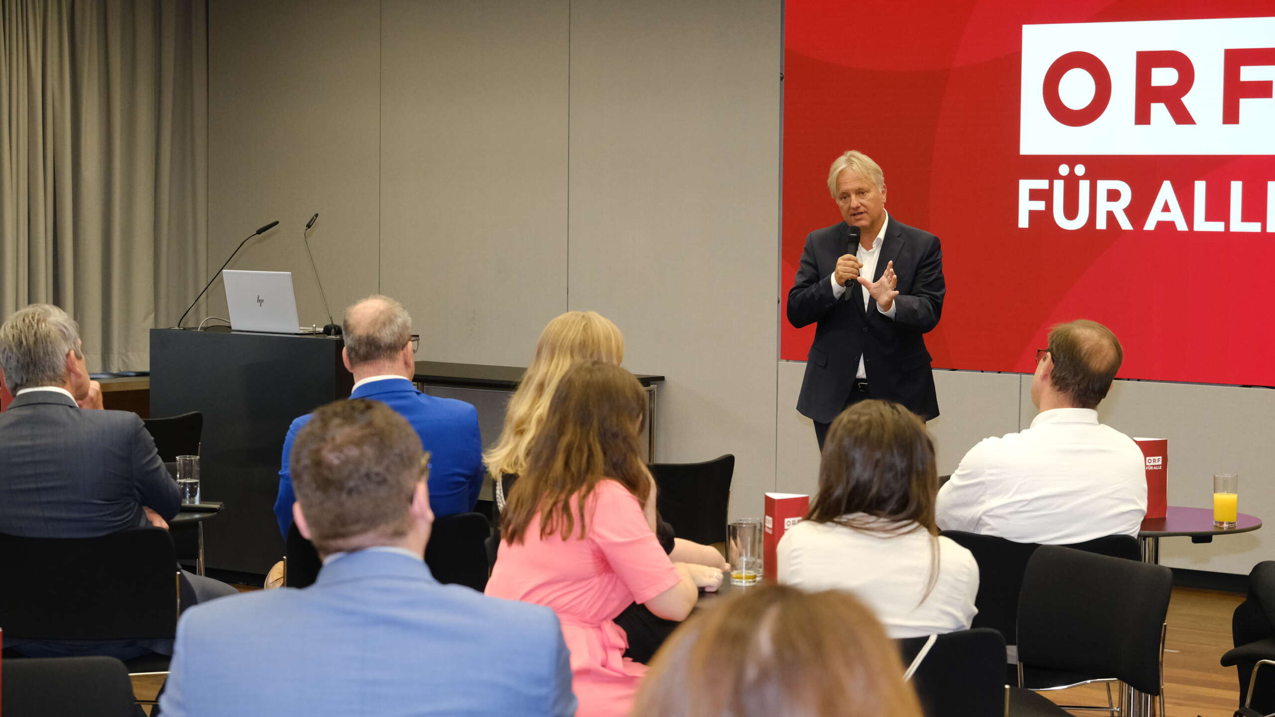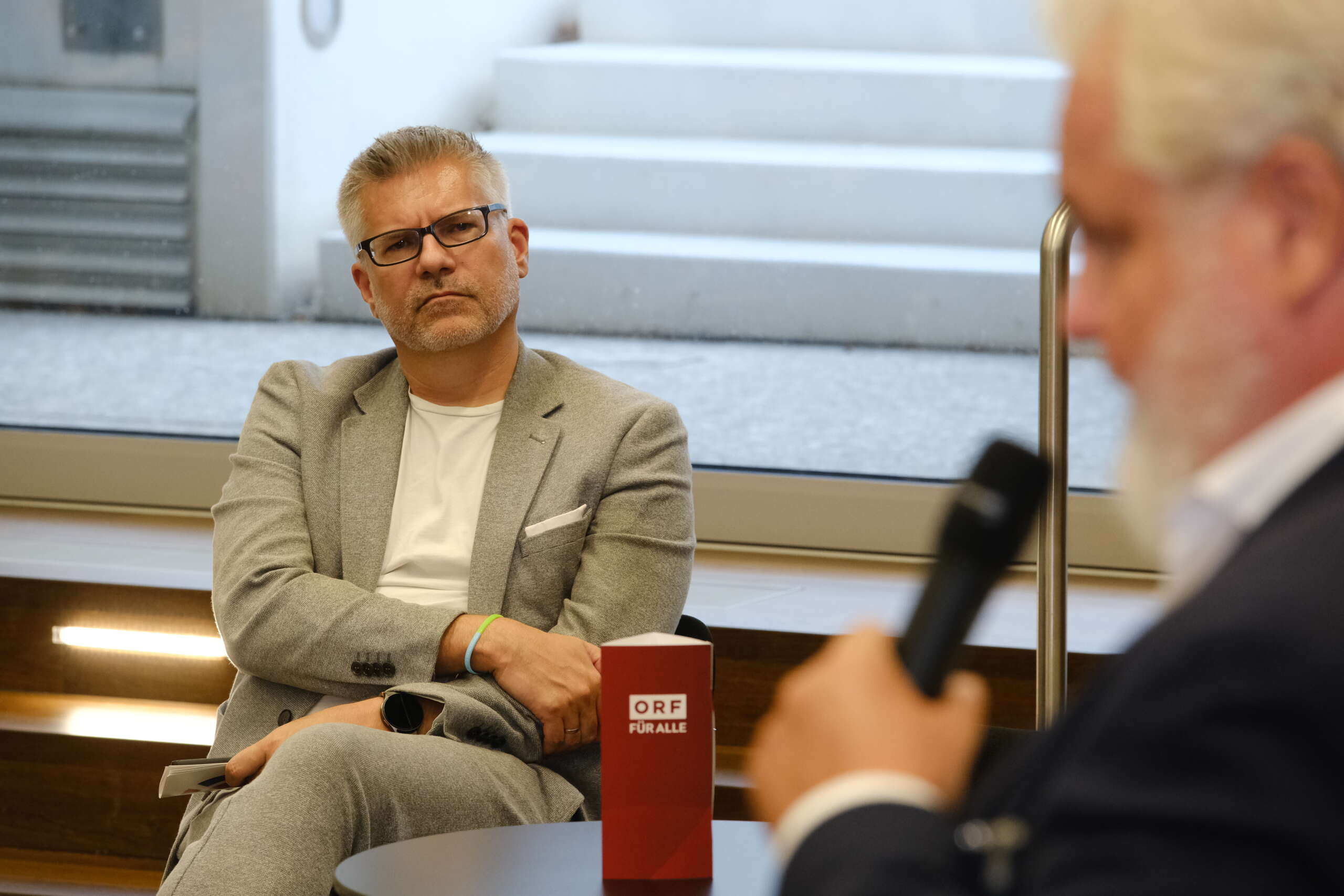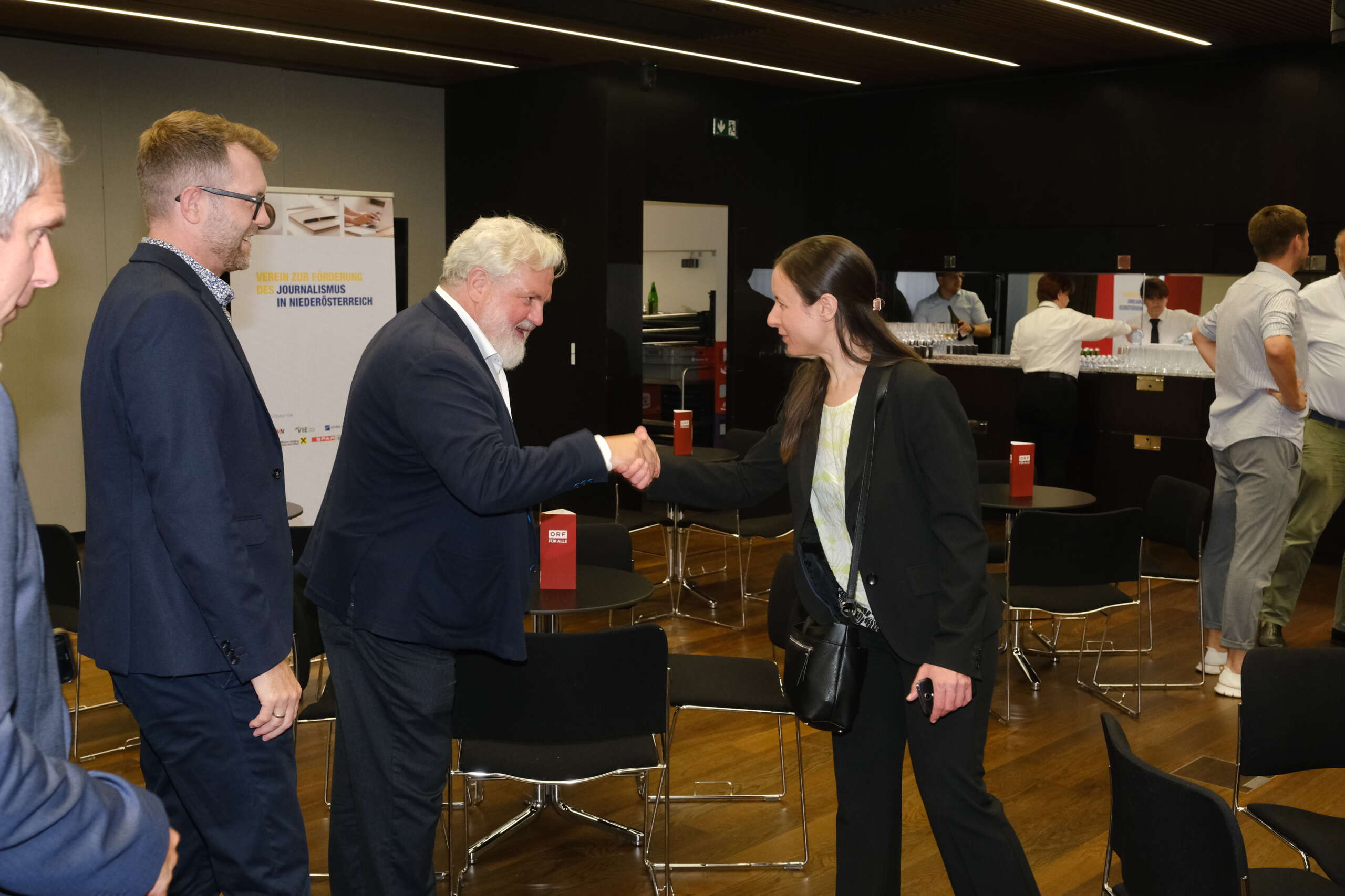 Zum Austauschen, Netzwerken und Diskutieren hat der Verein zur Förderung des Journalismus in Niederösterreich am Dienstag, den 03. September, ein „Medien Inside“ veranstaltet. Gestartet hat dieses mit einer Führung durch das ORF-Zentrum in Wien, die Teilnehmenden bekamen etwa Einblick in die Redaktion von „Ö3″ oder in die Fernseh-Studios. ORF-Moderator Tobias Pötzelsberger, bekannt durch die Nachrichtensendung „Zeit im Bild 1″, führte anschließend durch den multimedialen Newsroom des ORF-Zentrums. ORF-Chefredakteur Johannes Bruckenberger, ORF-Chefredakteur Sebastian Prokop, Ö3-Chef Michael Pauer sowie der Direktor für Technik und Digitalisierung des ORF Harald Kräuter gaben Einblicke in die aktuelle Arbeitsweise der Journalistinnen und Journalisten vor Ort.
