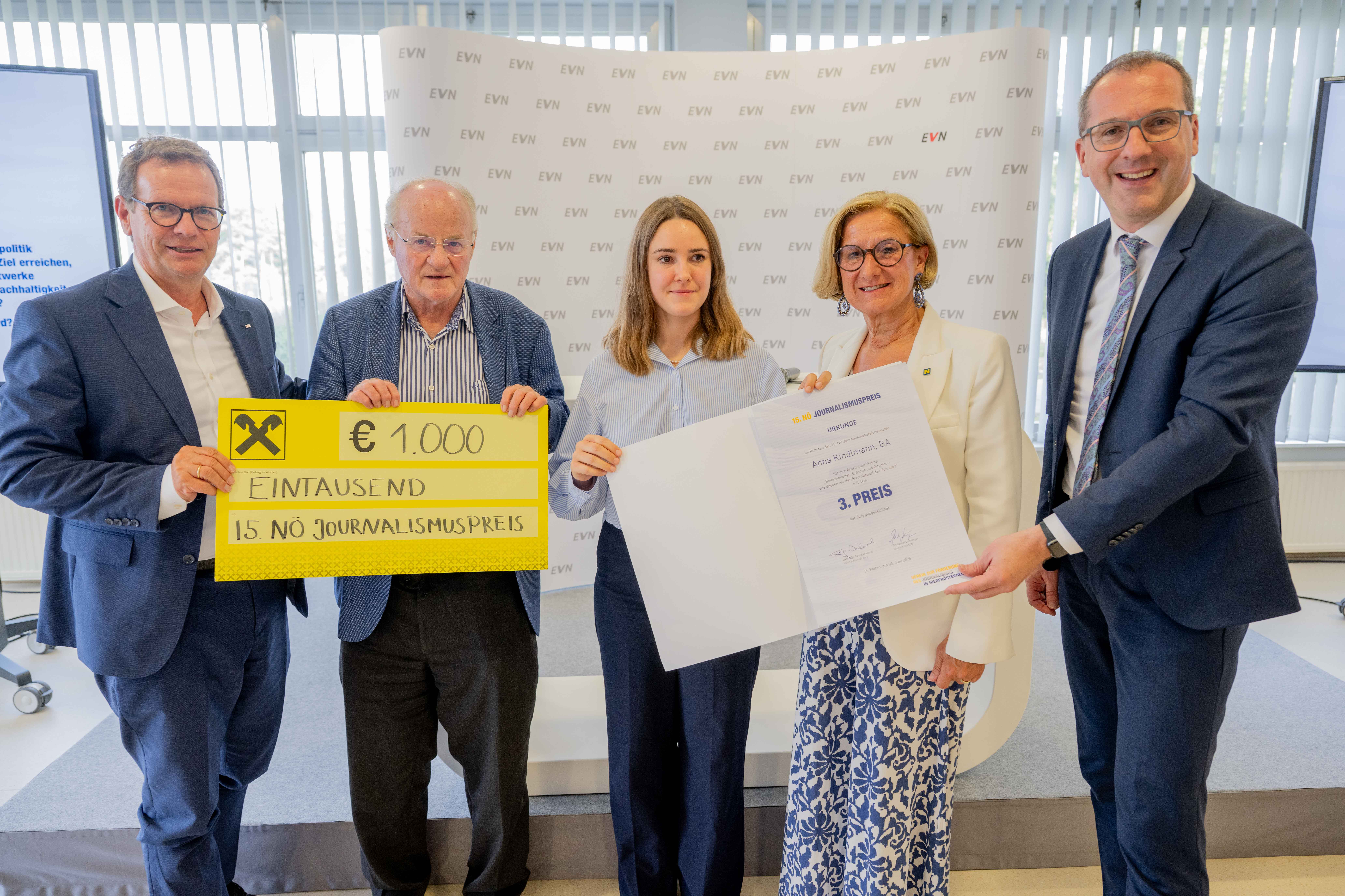 Zwentendorf, 03.06.2025 – In Haunoldstein, einer kleinen Gemeinde im niederösterreichischen Mostviertel, wirkt zunächst alles wie andernorts: Kirche, Bäcker, Gemeindebüro. Wären da nicht sechs Windräder, Photovoltaikanlagen und ein kleines Wasserkraftwerk, liest man in der Reportage. „Die kleine Gemeinde im Mostviertel hat sich in wenigen Jahren zur ersten Energiegemeinschaft Europas entwickelt, die diese drei Quellen lokal nutzt und damit über 92 Prozent ihres Strombedarfs selbst deckt“, beschreibt Anna Mayr in ihrem Artikel, überzeugt die Jury und erhält damit den ersten Platz des 15. NÖ Journalismuspreises des Vereins zur Förderung für Journalismus in Niederösterreich. Die 23-Jährige kommt aus Purgstall an der Erlauf, hat ein Bachelorstudium in der Gesundheits- und Krankenpflege abgeschlossen und absolviert derzeit das NÖ Journalismus-Stipendium. Den Sieger-Text hat sie für die Niederösterreichischen Nachrichten verfasst.